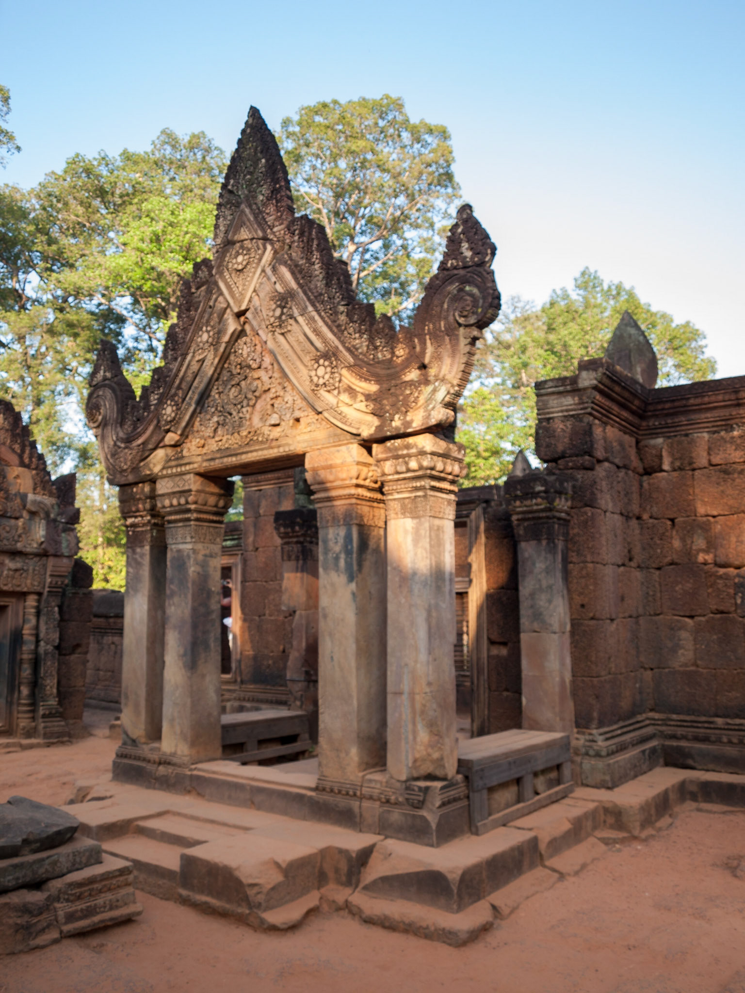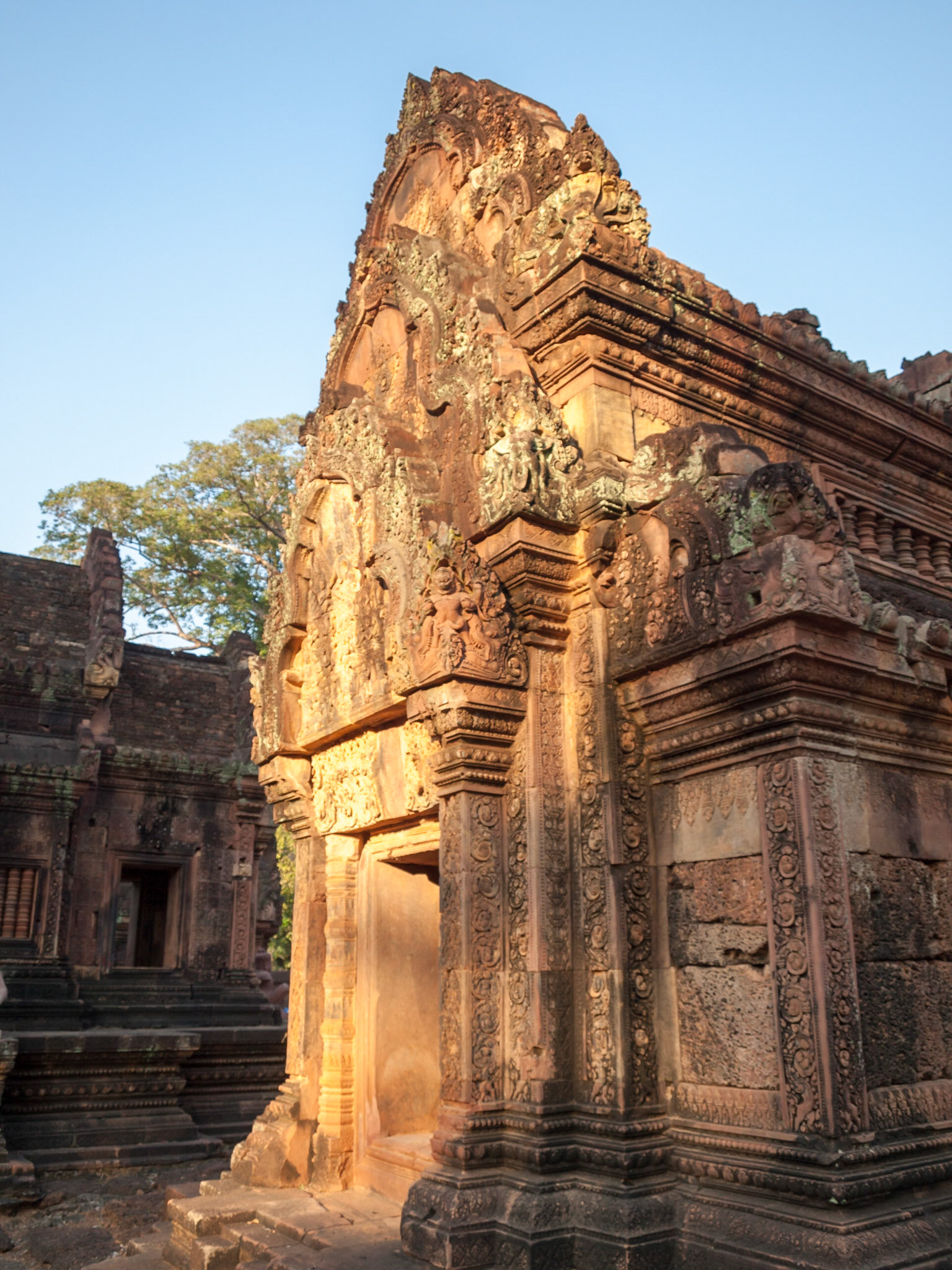 Banteay Srei, Siem Reap, Cambodia - a Hindu temple dedicated to Shiva commissioned by a Brahman. The finest carvings on a pinkish stone