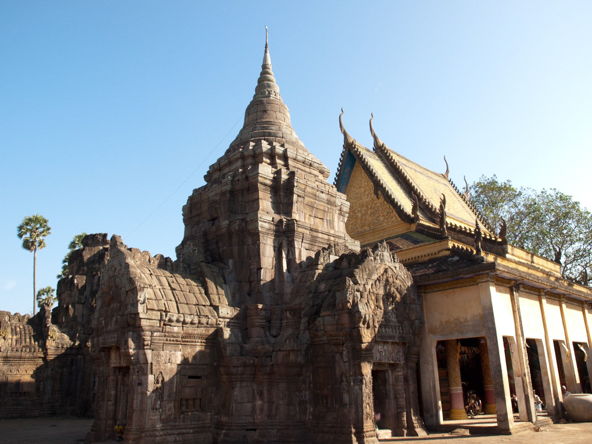 Wat Nokor, Khompong Cham, Cambodia - an 11th century Mahayana Buddhist shrine with a modern Theravada Buddhist pagoda inside