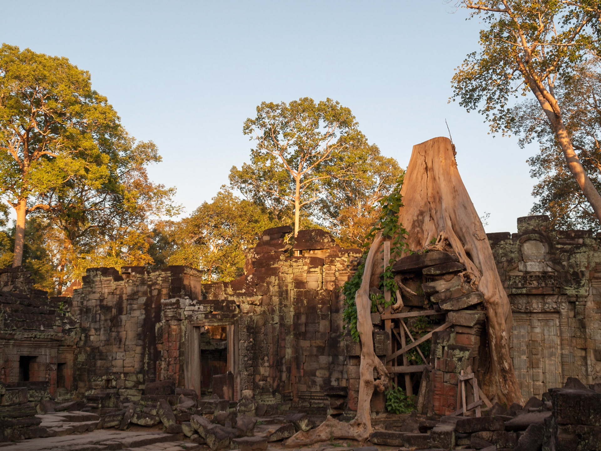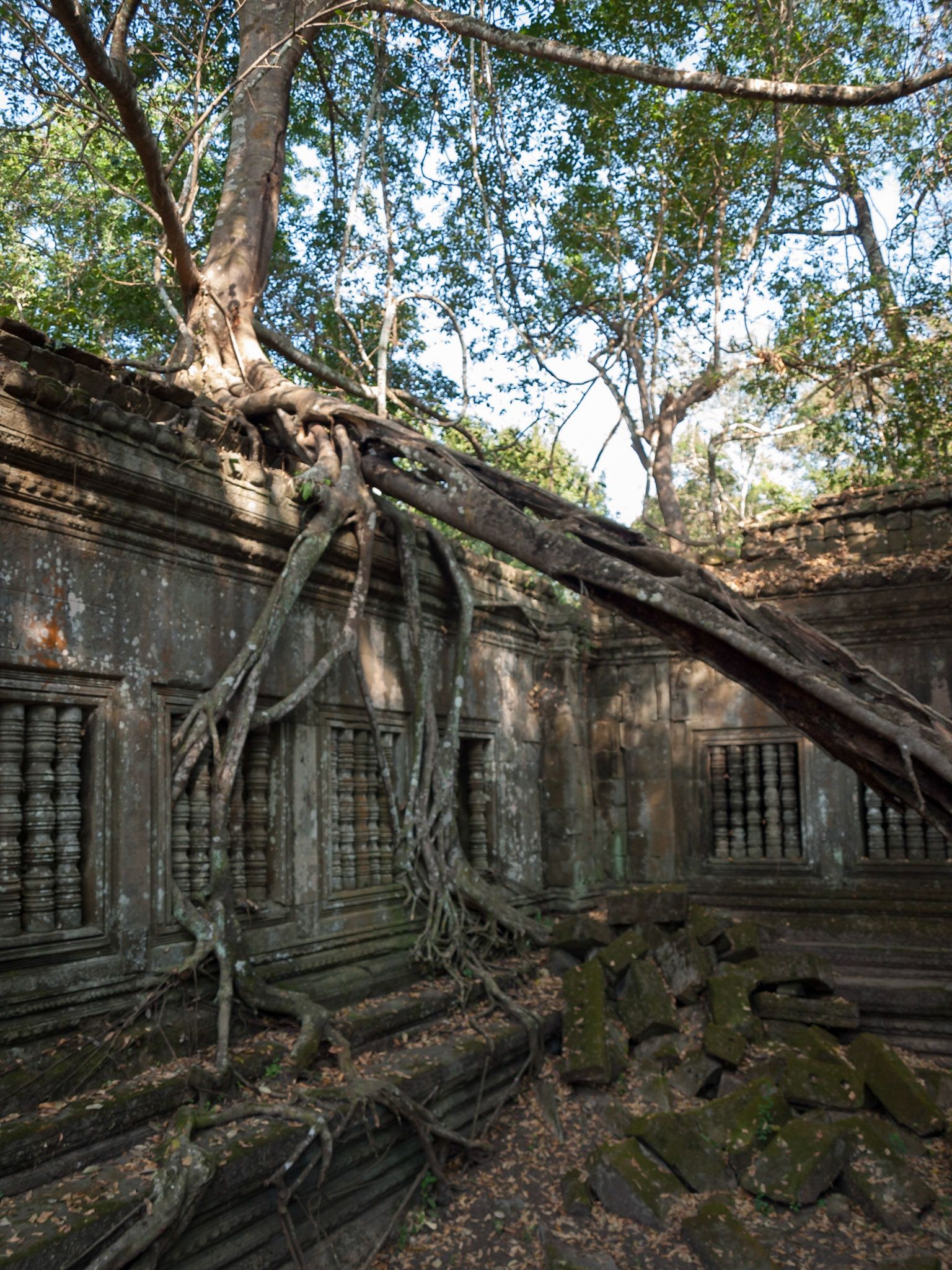 Beng Mealea, Cambodia - a temple tower hold by trees