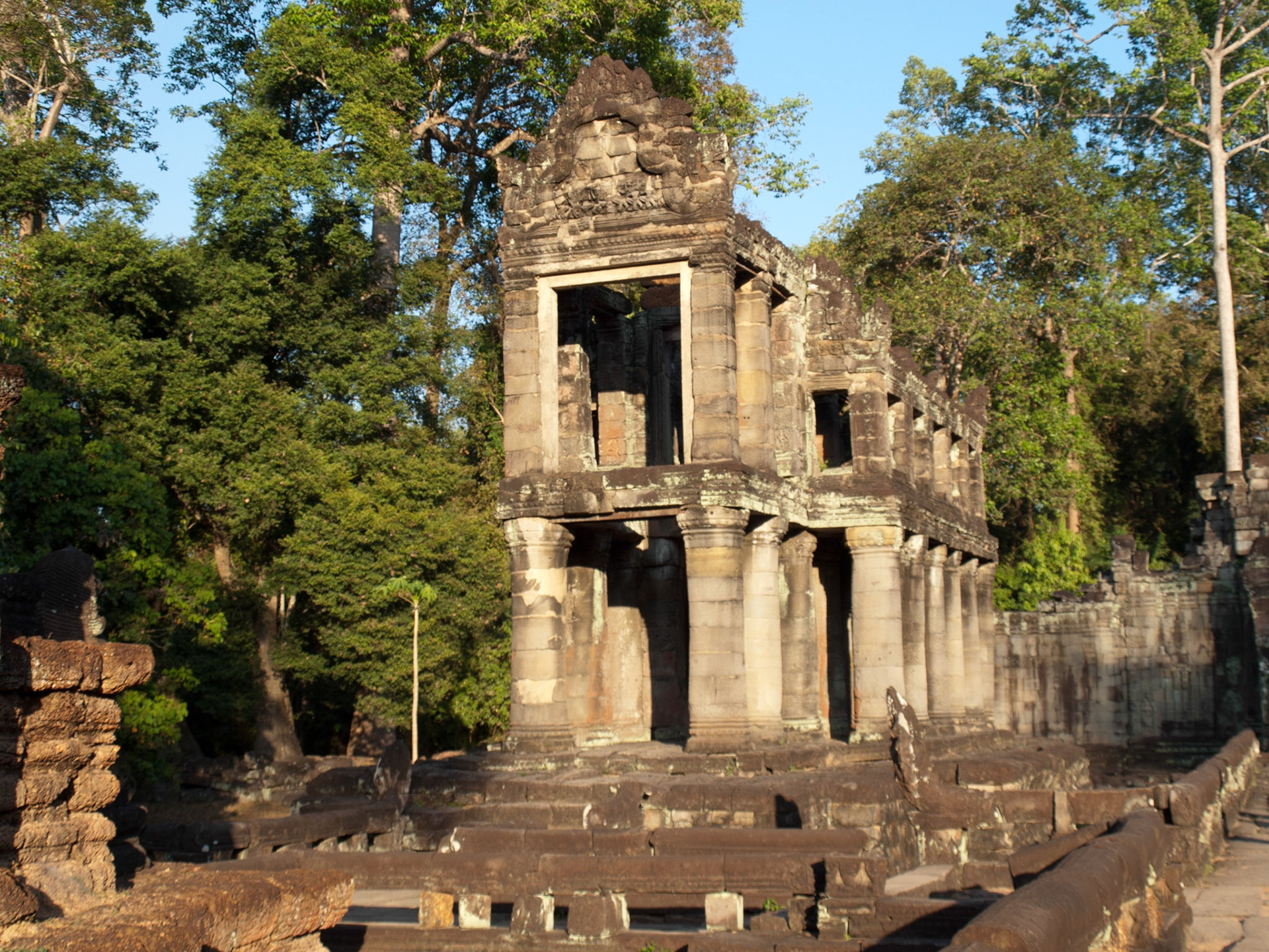 Preah Neak Pean a Buddhist temple from the late 12th century formed by a large square pool, surrounded by four smaller ones, and a central island