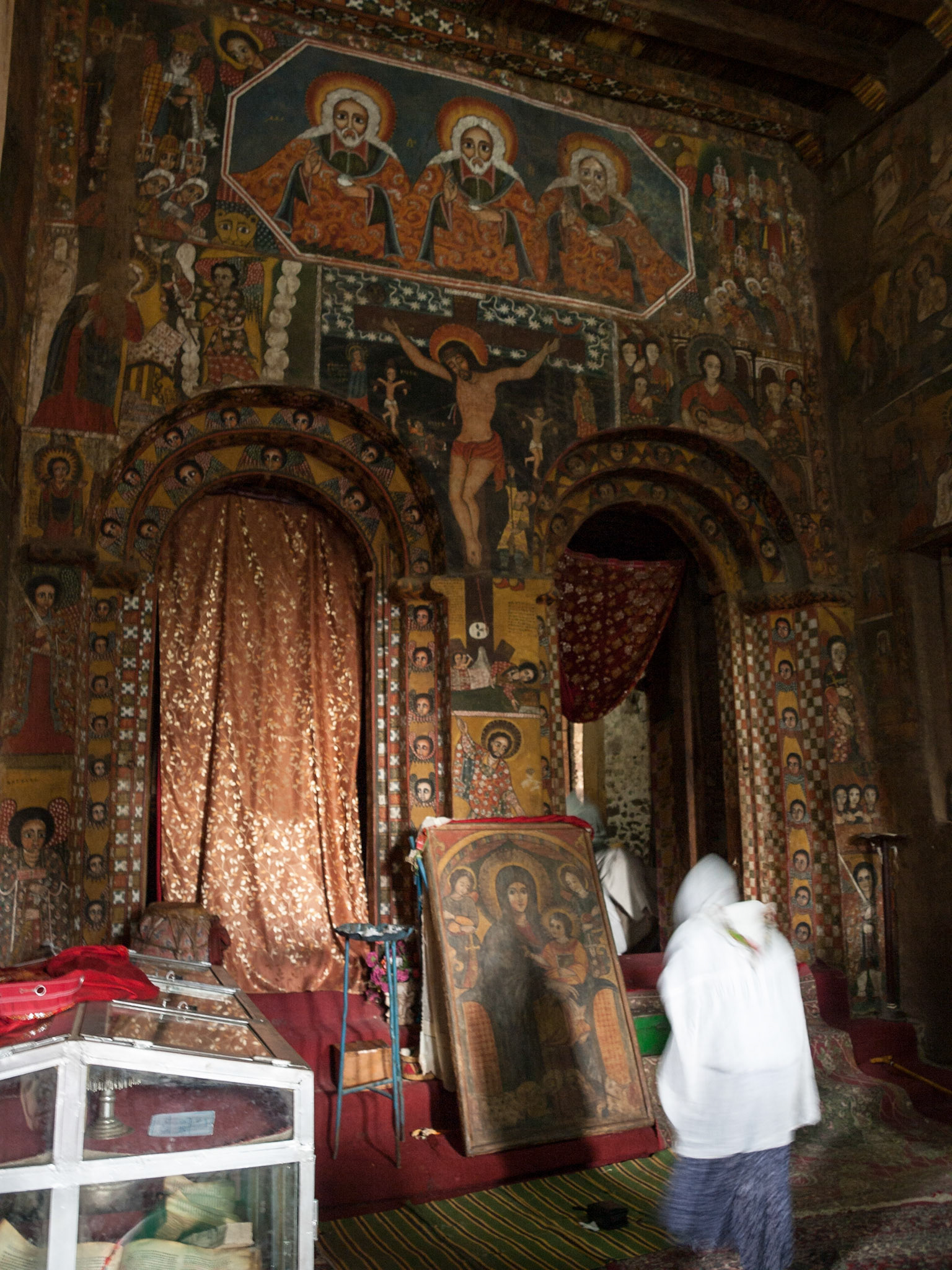 Crucification painting inside Bet Golgotha church in lalibela