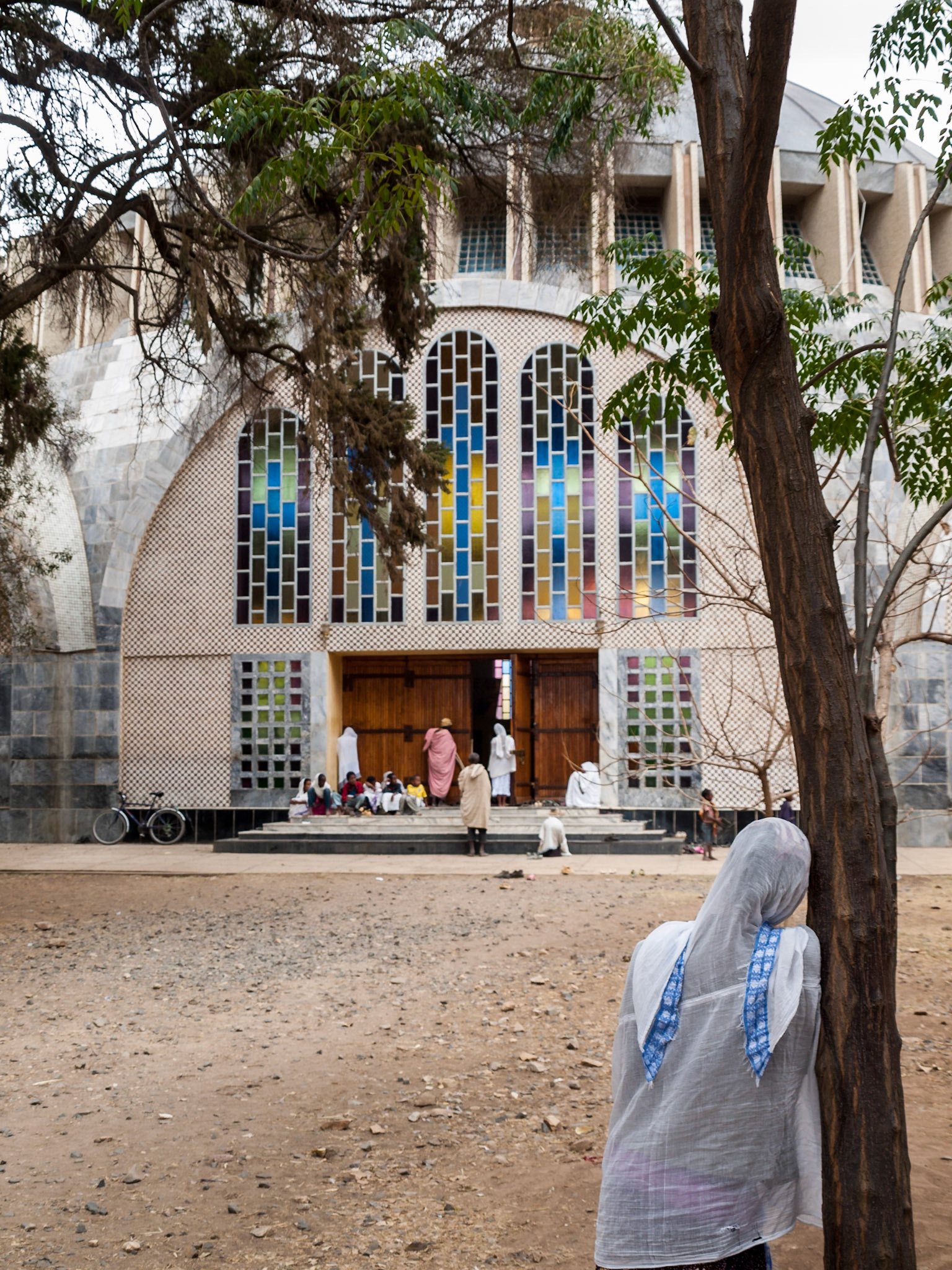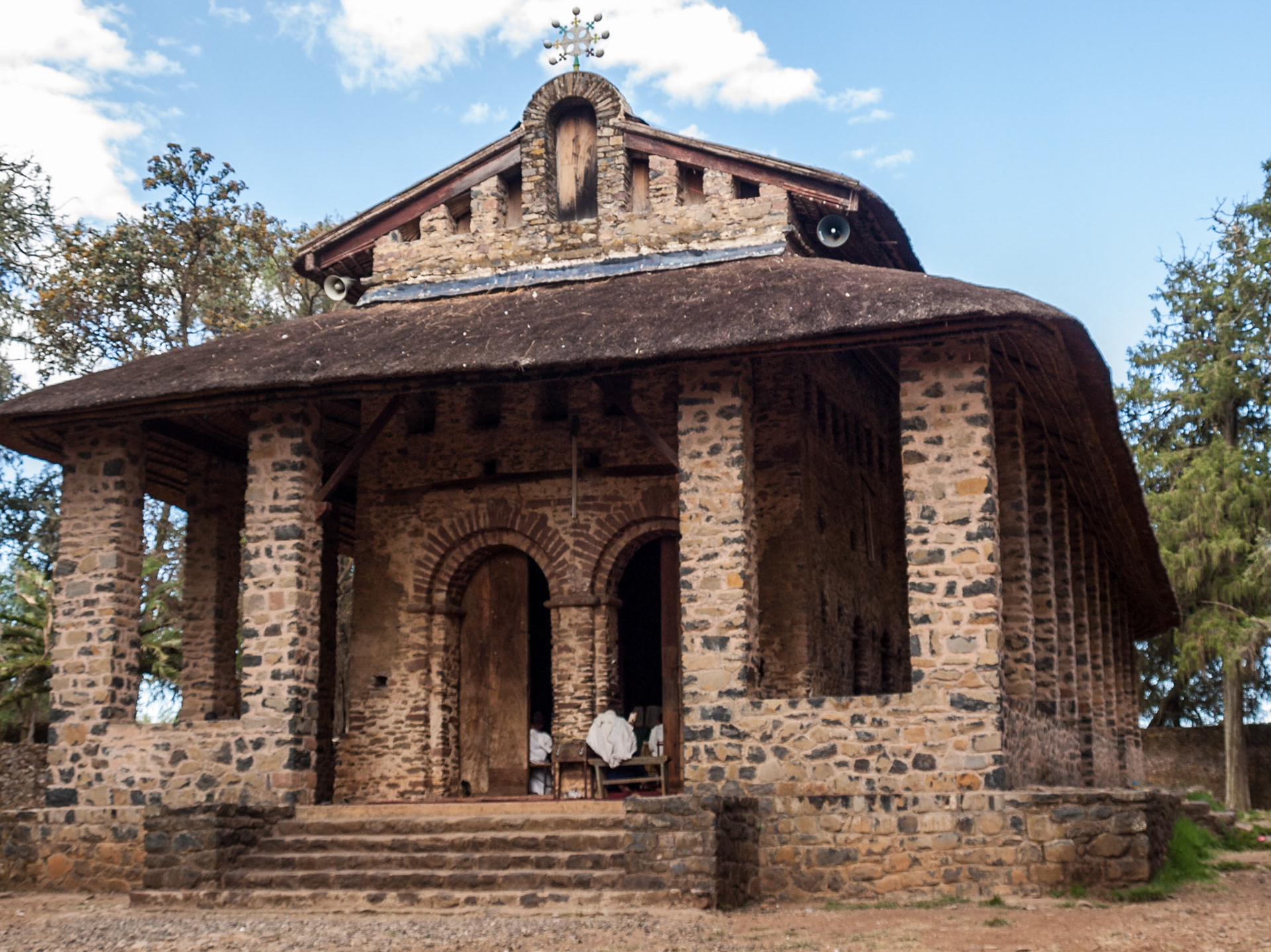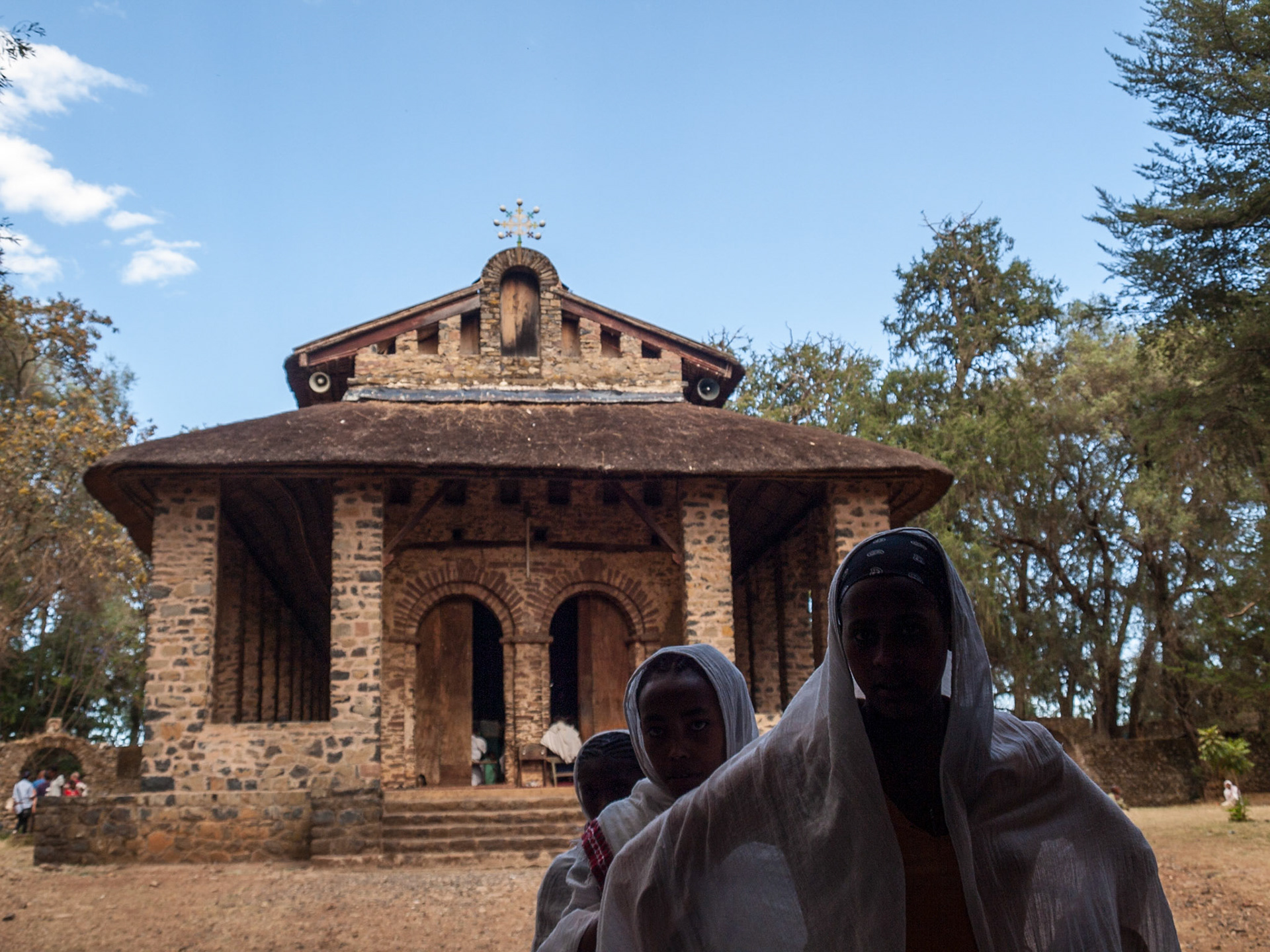 Pilgrims outside Bet Abba Libanos church in Lalibela